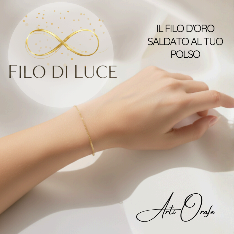 SALDA IL TUO FILO DI LUCE, un bracciale in oro e argento, saldato al polso come un legame che brilla per sempre.