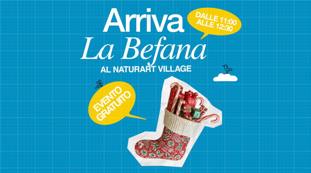 La Befana arriverà al Naturart Village con una speciale caccia al tesoro fatta di giochi, indovinelli e poesie, pensata per stimolare fantasia e divertimento.