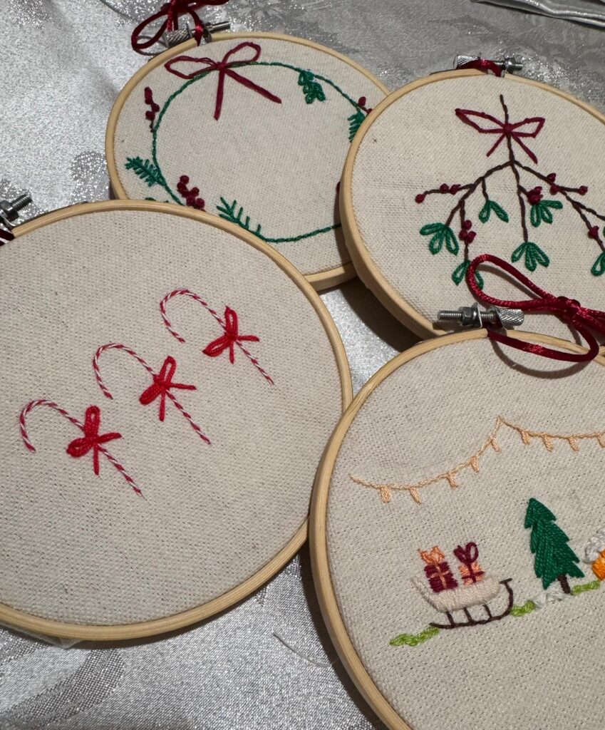 Crea il tuo ricamo natalizio su telaio, sorseggia vino e goditi un pomeriggio rilassante e creativo.